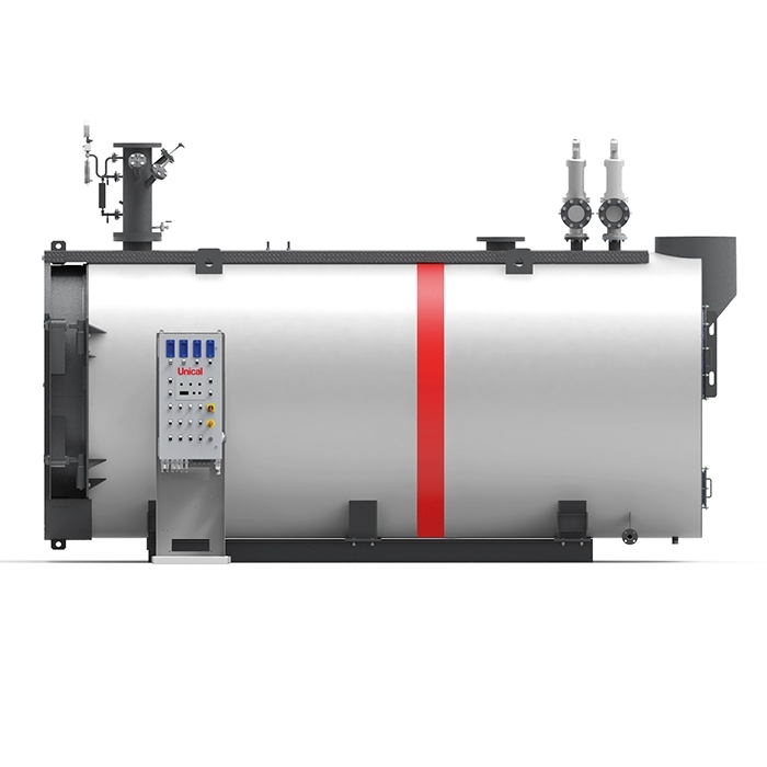 Котел складається з циліндричної топки, в якій утворюється полум'я. Димові гази з камери згоряння потрапляють у спеціальний інверсійний канал. Потім, від фронтальних дверей прямують димогарними трубами до збірного коробу димових газів. Котел забезпечує низькі поверхневі теплові навантаження у камері згоряння та низькі викиди NOx (з пальниками серій з низьким NOx).