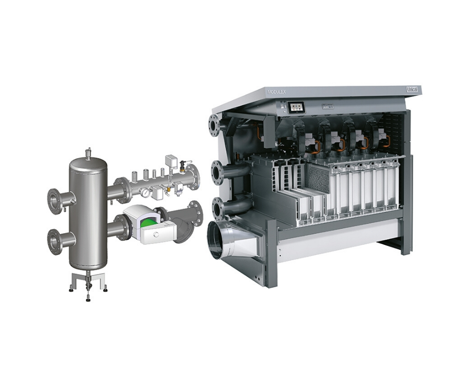 Котли складається з модулів теплообмінників зі своїми пальниками. Низький рівень викидів NOx. Котли MODULEX конденсаційного типу, для внутрішньої/зовнішньої установки, IP X5D Діапазон потужності: 100 кВт. до 1500 кВт.