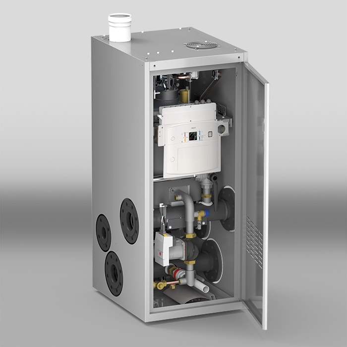 Підлоговий конденсаційний газовий котел, низький клас NOx 5. Газовий або LPG, для внутрішньої/зовнішньої установки, захист від ізоляції IP X5D