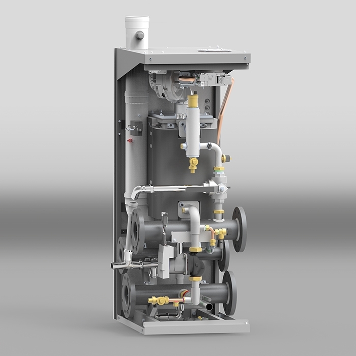 Кожен алюмінієвий/кремнієвий/магнієвий модуль має свою власну камеру згоряння із загальним радіаційним пальником, модулюючим вентилятором, газовим клапаном, пристроєм керування полум'ям та запалюванням BMM, датчиком NTC для локального контролю температури та запобіжним термостатом.